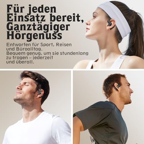 OHAYO Open Ear Kopfhörer Komfortabel, Bluetooth Kopfhörer Sport, 40h Wiedergabe, Fester Halt, Starker Bass, Kopfhörer Kabellos mit ENC Noise Cancelling Mic, Digital Display, IPX6 Wasserdicht