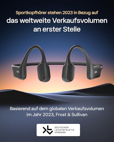 SHOKZ OpenRun Knochenschall Kopfhörer, Open-Ear Sport Bluetooth Kopfhörer mit Noise-Cancelling Mikrofon, IP67 wasserdichte kabellose Ohrhörer zum Laufen, 8 Std Spielzeit, USB-C, mit Sport-Stirnband