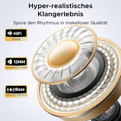 Adaptive Basskompensation und 12-mm-Bio-Membran-Treiber für satten Sound. Ein intelligenter Algorithmus passt den Bass automatisch an Ihre Ohrform und den Sitz an, während der 12 mm große Treiber mit biologischer Membran für klare Mitten und Höhen sowie kraftvolle Bässe sorgt. Das Ergebnis ist ein ausgewogener und immersiver Klang bei Musik, Videos und Spielen.