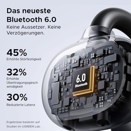 UGREEN ClipBuds Open-Ear Kopfhörer mit 4 Mikrofonen ENC Geräuschunterdrückung, 30 Stunden Akku, Bluetooth 6.0, APP-Unterstützung, IPX5 Wasserschutz, Raumklang und Gerätedoppelverbindung