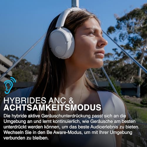 SMART ANC BLUETOOTH KOPFHÖRER: Die intelligente, aktive Geräuschunterdrückung passt sich an die Umgebung an und lernt ständig, wie sie Geräusche am besten unterdrückt, um das beste Klangerlebnis zu bieten. Aktivieren Sie die ANC Funktion, um Geräusche von bis zu 25 dB zu unterdrücken, oder wechseln Sie in den Be Aware-Modus, um mit Ihrer Umgebung verbunden zu bleiben