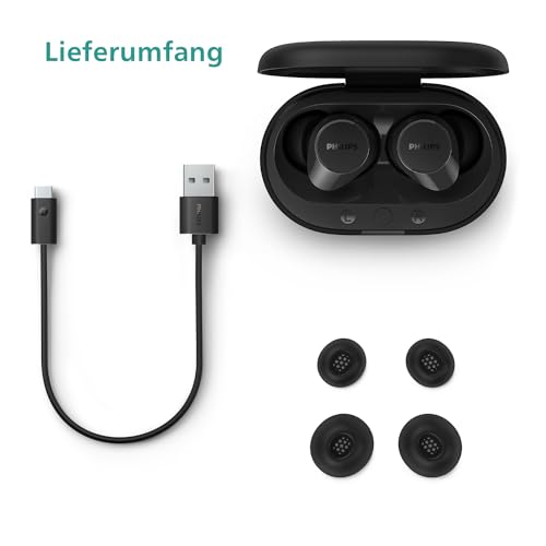 Philips TAT1209BK True Wireless In Ear Bluetooth Headphones – Small Buds. Great Value Natural Sound. Dynamic bass, Pocket-Sized Charging case, Clear Calls – Black