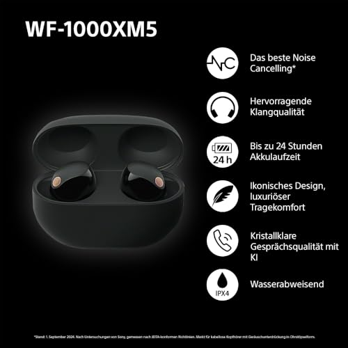 SONY WF-1000XM5 – Flaggschiff unter den kabellosen Kopfhörern mit modernster Technologie für erstklassige Klangqualität und die beste Noise Cancelling-Leistung auf dem Markt