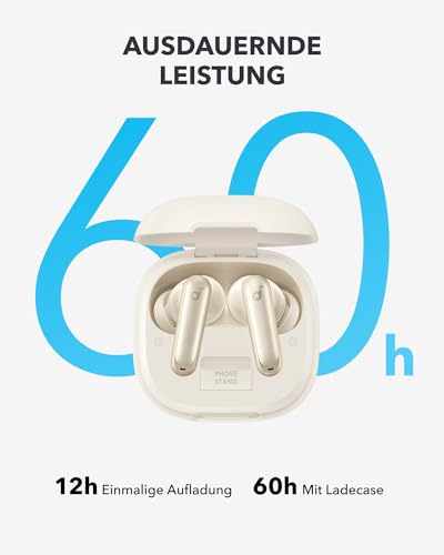 soundcore P40i by Anker, Wireless Earbuds mit Noise Cancelling, Adaptive Geräuschunterdrückung, BassUp, 60h Spielzeit, 2-in-1 Hülle und Smartphone-Ständer, IPX5, kabelloses Aufladen, Bluetooth 5.3