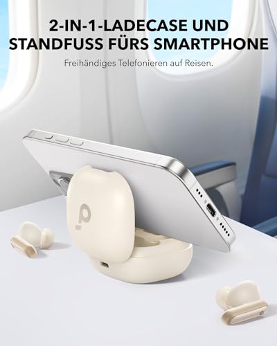 2-IN-1 LADECASE UND SMARTPHONE-HALTER: Die kabellosen soundcore P40i Earbuds verfügen über ein einzigartiges Ladecase, das gleichzeitig als Smartphone-Ständer dient, damit du deine Lieblingssendungen freihändig genießen kannst. Dieses multifunktionale Design verbessert dein Filmerlebnis, wenn du unterwegs bist.