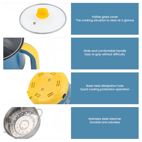 Elektrischer hot pot mit dampfgarer, elektrische hot pot 1.8l, tragbare mini antihaft multikocher, schneller ramen kocher, tragbare antihaft topf für zuhause, büro, schlafsaal