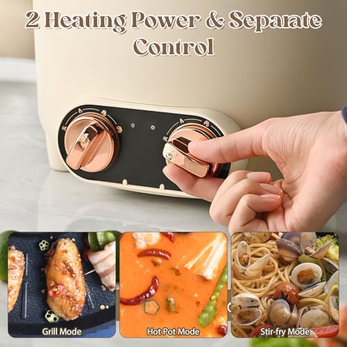 3-Stufen Temperaturregelung & Flexibilität: Doppelte Drehknöpfe für separate Steuerung der beiden Kochbereiche. 3 Temperaturstufen ermöglichen Anpassung an verschiedene Zubereitungsarten: langes Garen, mittleres Braten oder schnelles Heizen. Einfache Bedienung, auch für Koch-Anfänger