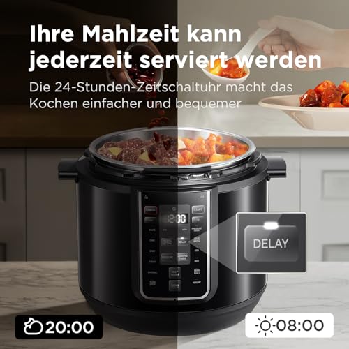 PROFESSIONELLE SICHERHEITSFUNKTIONEN: Ausgestattet mit 10 Sicherheitsfunktionen, die ein einfaches und sicheres Kochen garantieren, wie z. B. Überhitzungsschutz, automatischer Druckablass und Deckel-Sicherheitsverriegelung usw.