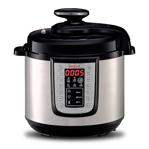Tefal Fast & Delicious Multikocher, elektrischer Schnellkochtopf, 25 automatische Programme, großes Fassungsvermögen von 6 L, einstellbare Temperatur, inkl. Rezeptheft, Schwarz/Edelstahl, CY505EF0