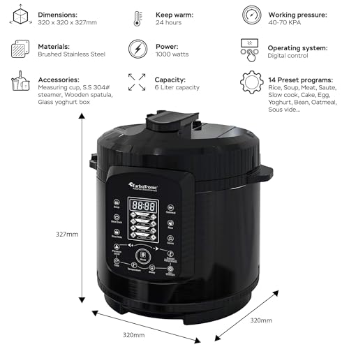 Be the first to review “TurboTronic Druckkochtopf 6L mit 2x Topf Edelstahltopf und beschichtet, Dampfgarer, Multikocher, elektrischer Schnellkochtopf, Dampfkochtopf Schwarz”