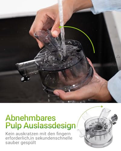 REINER SAFT + NUTZBARER TRESTER: Slow Juicer Technologie (60 U/min) liefert 99,9% schaumfreien Saft (ideal für klaren Holundersaft!) und knochentrockenen Trester als Dünger oder Hunde-Leckerli.
