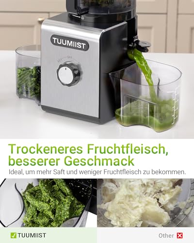 150mm XXL-Entsafter, TUUMIIST Großkalibriger Entsafter Testsieger für Obst & Gemüse, 3L Füllvolumen Für Familie – 99% Saftausbeute, BPA-frei, REV Anti-Blockier-System + Ein-Klick-Reinigung, Schwarz