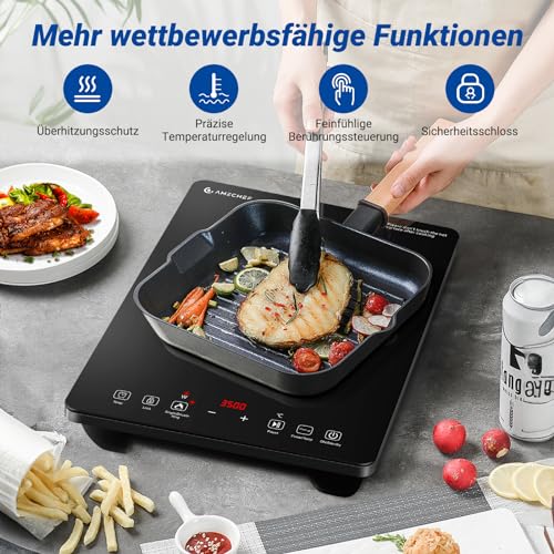 AMZCHEF Induktionskochplatte Einzel, 3500W Induktionskochfeld 1 Platte mit Doppelter Ring, 9 Leistungs- und Temperaturstufen, Sicherheitssperre, Pausenfunktion, Zeitschaltuhr, Überhitzungsschutz