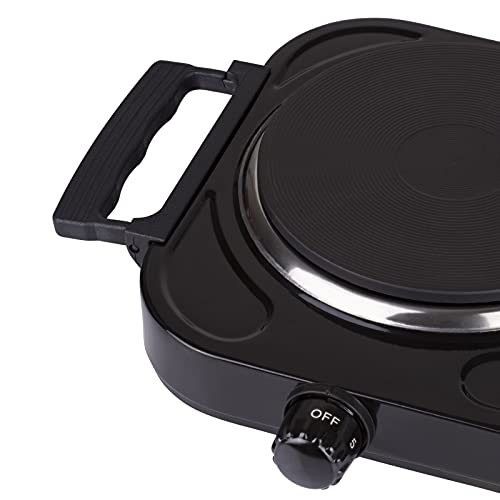 Grafner Kochplatte doppelt mit klappbaren Griffen, 2000 Watt, 2 Massekochfelder mit je Ø 155 mm, stufenlose Temperatureinstellung, Farbe nach Wunsch: schwarz oder weiß, Kochfeld Herdplatte doppel
