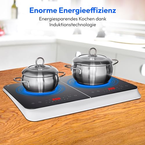 Sparen Sie Zeit und Geld: Die Doppel-Induktionskochplatte kocht Ihr Essen schnell und verbraucht dabei wenig Energie. Dadurch sparen Sie nicht nur kostbare Zeit, sondern schonen auch den Geldbeutel.