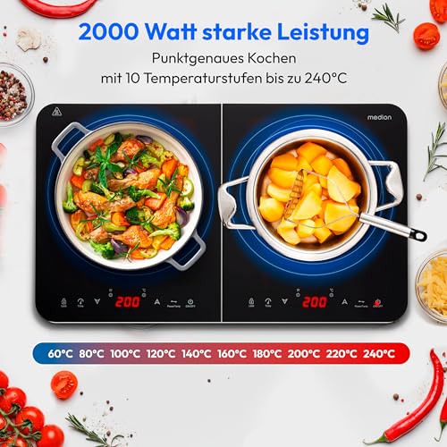 MEDION Doppel-Induktionskochplatte, 3500 Watt, Zwei Kochplatten, 10 Temperaturstufen, LED Display, MD18493, schwarz