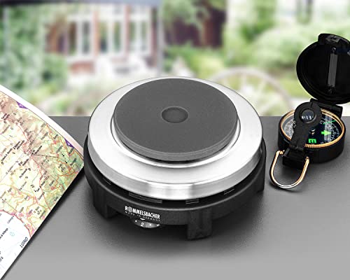 ROMMELSBACHER Reisekochplatte RK 501 – Made in Germany, Gussheizplatte 80 mm Ø, ideal für Reise und Camping, stufenlos regelbar, Überhitzungsschutz, Kabelaufwicklung, 500 Watt, Edelstahl/schwarz