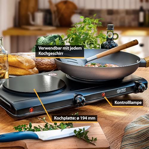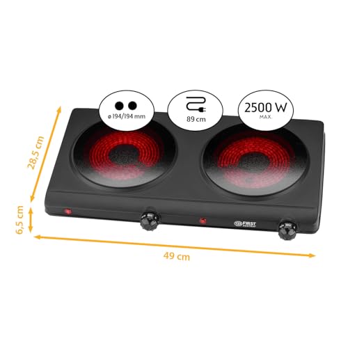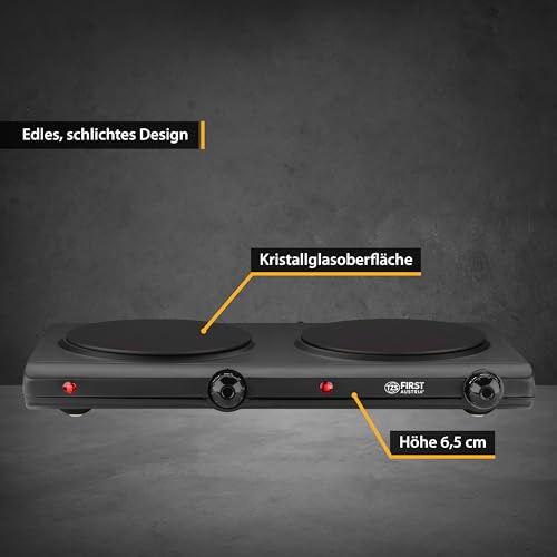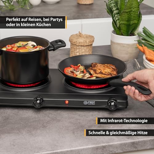 TZS First Austria – Kochplatte Infrarot 2er Glaskeramik-Herdplatte ALLE Topfarten 2500W – Doppelkochplatte Kochfeld elektrisch für Umzug, Camping & Wohnung – Stufenlose Einstellung & Kontrollleuchte