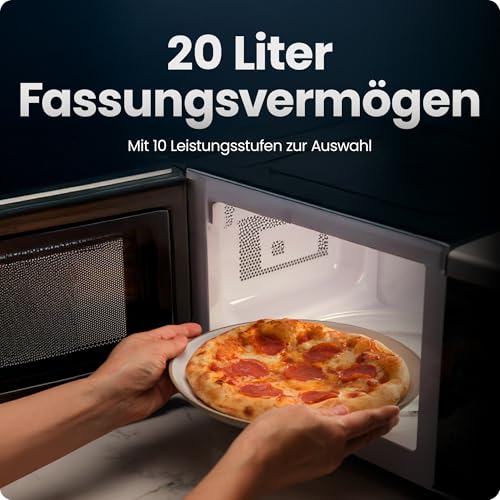 NIEDRIGE BIS HOHE LEISTUNG: Diese digitale Mikrowelle schwarz vereint hohe Leistung in einem kompakten Gerät. Wählen Sie aus 10 Leistungsstufen, von einer niedrigen Einstellung zum Schmelzen von Butter bis zur maximalen Leistung für schnelles Garen in wenigen Augenblicken.