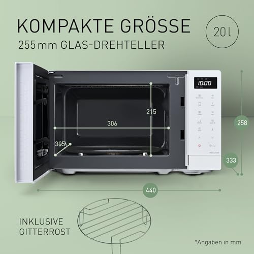 KOMPAKTES DESIGN & WEISSE LED: Maximieren Sie Ihren Platz in der Küche mit dieser kompakten, eleganten Mikrowelle mit 20 l Fassungsvermögen und klarem weißen LED-Display
