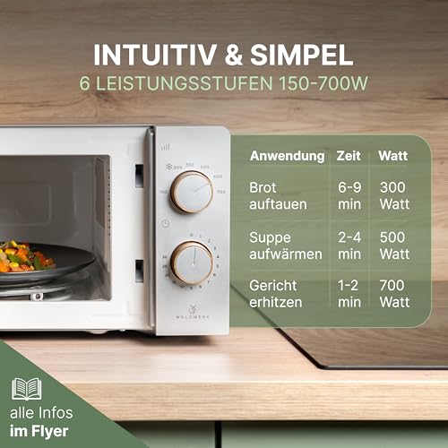 WALDWERK Mikrowelle 20L, 700 Watt – einfache Bedienung mit Drehknöpfen und edles Design