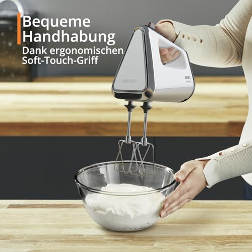 Krups 3Mix 9000 Handmixer, 750 Watt, Geschwindigkeitsregler, Turbomodus, Pulsfunktion, Mixer, ergonomischer Griff, langes Kabel, Handrührgerät inkl. Schneebesen und Knethaken, Schneeweiß, GN9101