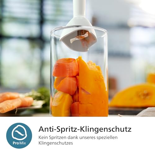 Leicht zu reinigen: Mit der ProMix-Technologie ist die Reinigung ein Kinderspiel. Lösen Sie den Mixstab und spülen Sie ihn unter fließendem Wasser ab, um eine problemlose Wartung zu gewährleisten