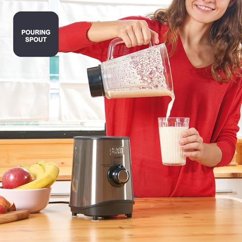 BLACK+DECKER – Standmixer mit Glaskanne 800W | 1,5 L Messbehälter | 4 Hochleistungs-Edelstahlklingen | Mehrstufige Geschwindigkeiten + Pulse-Funktion | Eiscrusher | Messbecher | Spülmaschinengeeignet