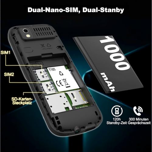T185 4G Handy Ohne Vertrag mit Dual-SIM-Slot | 1.8″ Farbdisplay | Bluetooth |1000mAh Akku |FM-Radio | LED-Taschenlampe | Kompakt und leicht | LTE Prepaid Tastenhandy | All Carrier Kleines Mobiltelefon
