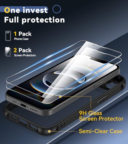 ivoler Hülle für iPhone 16e 6.1 Zoll mit 2 Stück Panzer Schutz Glas, [Militärstandard] Stoßfest [Kameraschutz] Handyhülle, Matt Durchscheinende Rückseite Anti-Fingerabdruck Schutzhülle Case, Schwarz