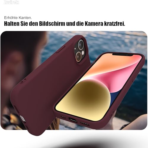 Silikon Handyhülle für iPhone 14 Hülle, Weiches Griff, Dünne, Minimalistisch, Stoßfest, rutschfest, Taschenpassend – Burgunderrot