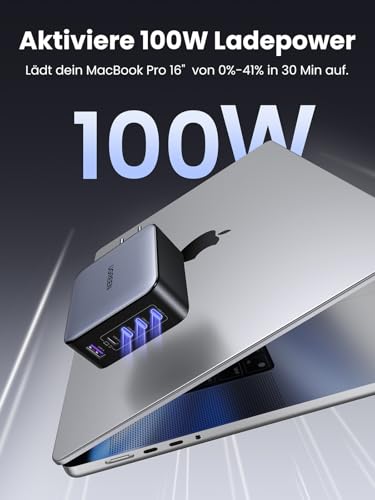 AKTIVIERE 100W LADEPOWER: Genieß ein blitzschnelles Laden von 100W Max beim einzelnen Port. Dieses 100W USB C Ladegerät kann dein MacBook Pro 14″ in nur 27 Min. von 0% bis zu 50% aufladen, macht dein Leben und Arbeit produktiver als je zuvor.