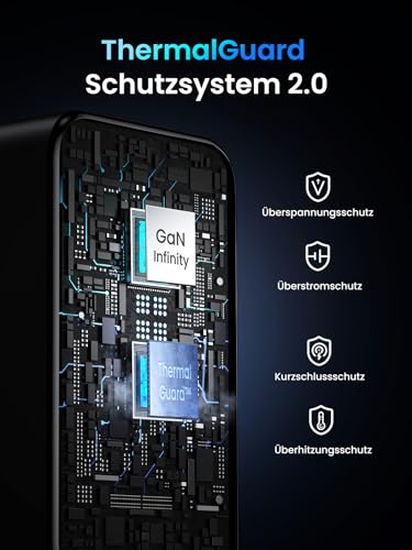 UGREEN-Tech für Ladeschutz: Mit Thermal Guard 2.0 & GaNInfinity Tech wird ein sicherer, schneller, energieeffizienter Ladevorgang mit außergewöhnlicher Performance gewährleistet. Dadurch kannst du nicht nur ein kompaktes Ladegerät, sondern auch ein unglaublich fantastisches und sorgenfreies Ladeerlebnis erhalten. Starten die Xploration mit Nexode X!