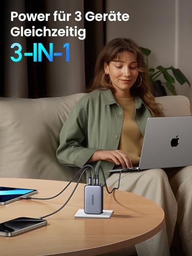 Power in der Handfläche: UGREEN bahnbrechende AirPyra-Tech ist eine neue Generation elektronischer Stacking-Tech und sorgt wie nie zuvor für ein tragbares und handtellergroßes Mini-Design. Dieses Nexode X 100W Ladegerät (70*43*32 mm) mit 3 Ports ist 45% kleiner als das originale 96W USB-C Ladegerät, bringt ultimative Mobilität für dein Alltagsleben.