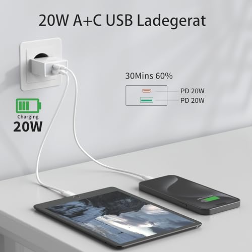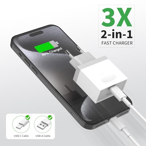 MEHRFACH USB A+C LADEGERÄT: 2 Port Schnellstecker ist kompatibel mit netzteil USBC und Typ C Schnittstelle, Dual Port Ladeausgang Leistung DC 5V 3A 18W. Stabile Leistung USB adapter unterstützt die schnellste Geschwindigkeit für das Aufladen des Phone Modelle. Schaltet automatisch auf Erhaltungsladung um, wenn das Telefon niedrig und in der Nähe von voll ist, um die Gesundheit der Batterie zu schützen. USB Netzteil und USB C Stecker Lernen Sie alle Langzeitoptionen für Ihr Handy Charger Smartphone kennen.