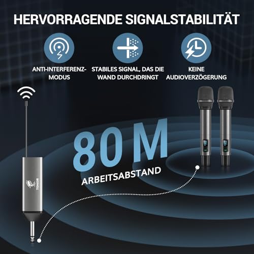 TONOR Mikrofon Kabellos, Wiederaufladbares Funkmikrofon Set, Metall, UHF, 2×20 Einstellbare Wireless Microphone für Kirche, Party, Hochzei, Hochzeit mit Einstellbarer Lautstärke, 80 m, TW520