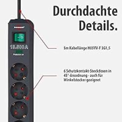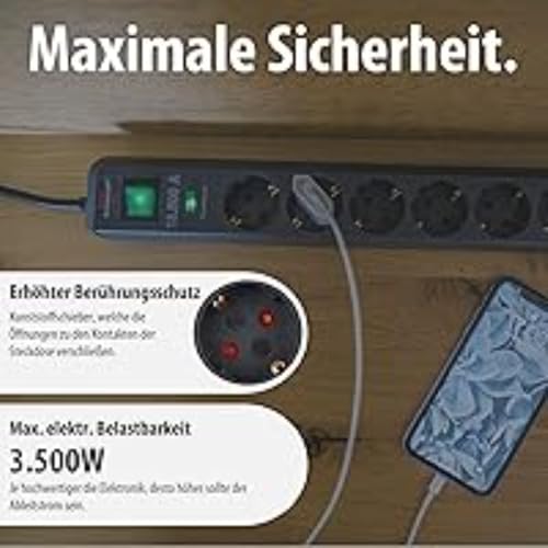 Steckdosenleiste mit Überspannungsschutz in der Farbe anthrazit eignet sich ideal für den Anschluss von Computer, Fernseh, Drucker usw.