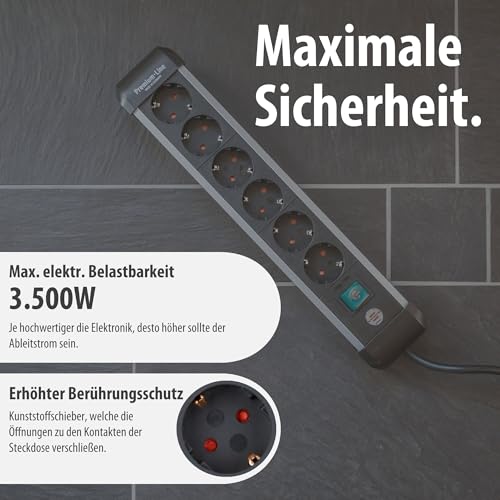 Steckdosenleiste 6-fach mit hochwertigem Gehäuse aus Aluminium im schlanken Design – eignet sich ideal für die Verwendung zu Hause oder im Büro, um angeschlossene Geräte mit Strom zu versorgen
