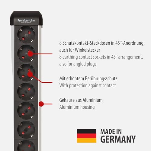 Brennenstuhl Premium-Protect-Line Steckdosenleiste 8-Fach mit Überspannungsschutz 60.000A (Mehrfachsteckdose mit Schalter und 3m Kabel, Made in Germany) Silber/schwarz