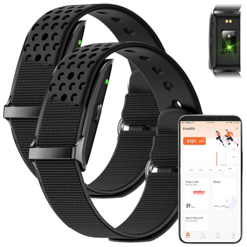 2 Fitness-Tracker mit jeweils Silikon-Armband, Texil-Armband, magnetischem USB-Ladekabel und deutscher Anleitung. Puls Tracker – Behalten Sie Herzfrequenz, Schritte, Kalorien und Schlaf im Blick: per App