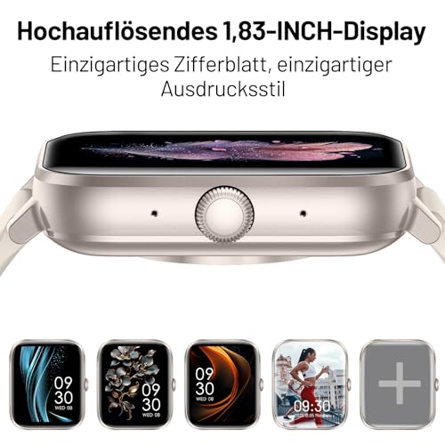 【Smartwatch für Damen & Herren: 1,83 Zoll HD-Touchscreen & personalisierbare Designs】:Diese Unisex-Smartwatch vereint Stil und Funktion mit einem 1,83-Zoll HD-Touchscreen – perfekt für Workouts und Business-Umgebungen. Personalisieren Sie Ihr Zifferblatt mit Fotos oder Kunstwerken, während kratzfestes Glas und einstellbare Helligkeit Langlebigkeit und perfekte Ablesbarkeit bei Sonne oder Indoor garantieren. Ein elegantes Design für Wochenend-Casuallooks und Business-Outfits.