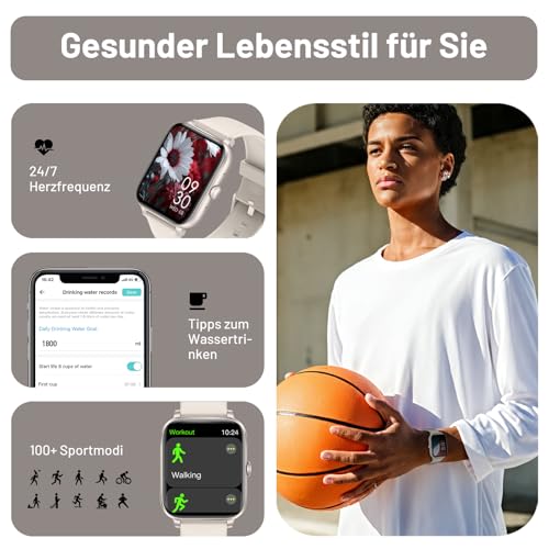 ASWEE Smartwatch Herren Damen mit Bluetooth Anrufe, 1,83 Zoll HD Fitnessuhr, 123+ Sportmodi Smartwatch, Fitness Tracker mit Schrittzähler, IP67 wasserdicht für Android iOS Geschenke Valentinstag