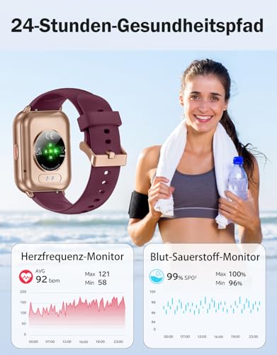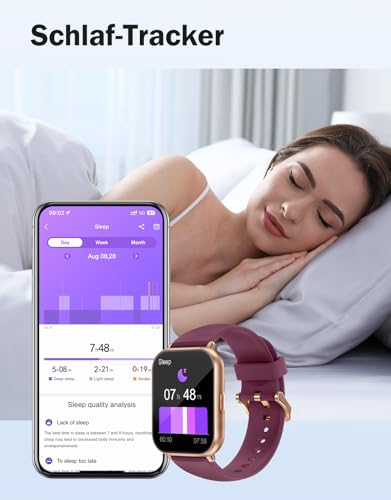 Herzfrequenz, Blutsauerstoff und Schlaferkennung Die Fitnessuhr kann Ihre Herzfrequenz in Echtzeit, Ihre Schlafqualität (leicht, tief, wach) und Ihren Blutsauerstoff SpO2 Wert genau überwachen. Sie zeichnet Ihre Schritte, Distanz und verbrannten Kalorien auf, um Ihnen dabei zu helfen, einen gesünderen Lebensstil zu entwickeln.