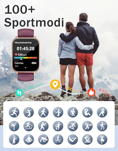 HUAKUA Smartwatch 1,85 Zoll Touchscreen mit Bluetooth Anrufe für Damen Herren,Sportuhr mit Herzfrequenzmessung,SpO2,Schrittzähler,Schlafmonitor,110+ Trainingsmodi für iOS Android Handy