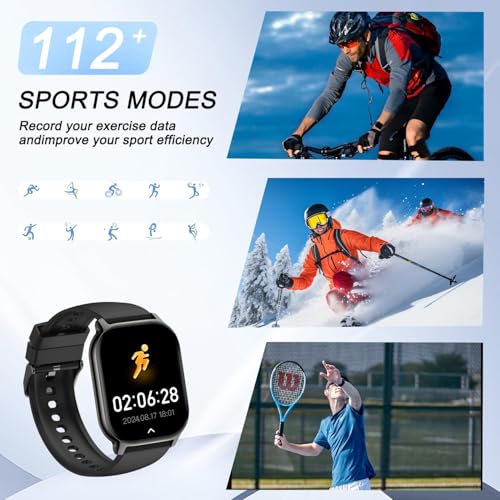 112+ Sportmodi und IP68 wasserdicht: Die Smartwatch ist ideal für Sportbegeisterte, da sie 112+ Sportmodi (Gehen, Laufen, Radfahren, Basketball, Fußball, Tennis usw.), Fitness-Tracker-Herzfrequenzänderungen und sofort verbrannte Kalorien während des Trainings bietet. Die Sport-Smartwatch verfügt über eine wasserdichte IP68-Leistung, die auch dann nicht beschädigt wird, wenn Sie trainieren, sich die Hände waschen und schwitzen.