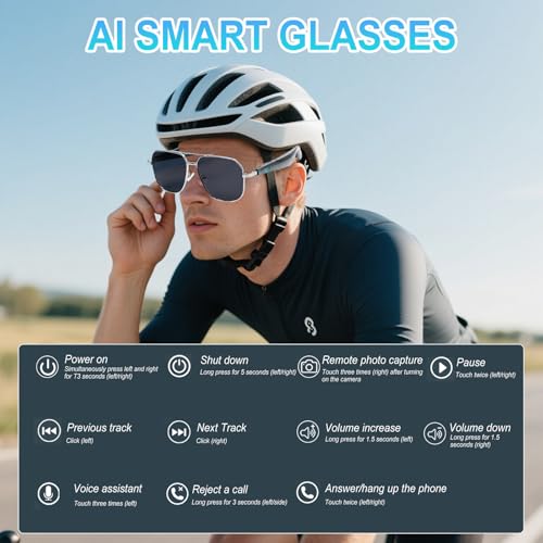 Zwei Hauptplatinen und zwei Lautsprecher: Die AI Smart Camera Glasses verfügen über zwei Hauptplatinen und zwei Lautsprecher, die die Open-Air-Soundfield-Technologie über Luftleitung nutzen. Dadurch wird der Druck im Gehörgang eliminiert, was ein freieres Hören ermöglicht, eine klarere Tonübertragung und eine verbesserte Bluetooth-Anrufqualität bietet. Während Sie Auto fahren, Rad fahren oder anderen Outdoor-Aktivitäten nachgehen, können Sie Musik genießen und gleichzeitig Ihre Umgebung wahrnehmen, was die Sicherheit maximiert.