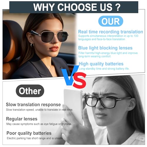 AI Übersetzer Sonnenbrille, intelligente Brille für Männer Frauen, AI-Übersetzungsbrille unterstützt über 140 Sprachen, Intelligente Brille mit Blaulichtfilter und UV-Schutz