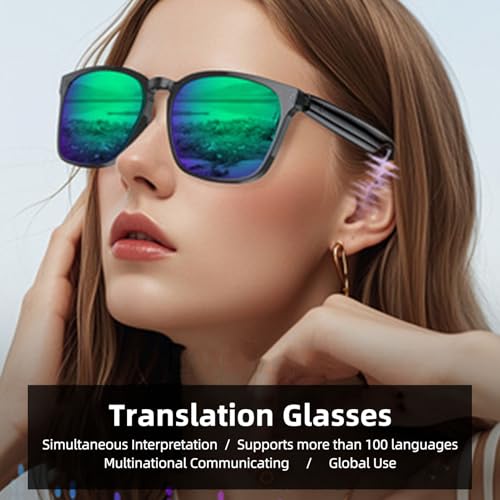 Annadue AI-Übersetzungs Bluetooth Brille für Männer und Frauen, über 100 Sprachen, Echtzeit AI Smart Brille, Integriertes Mikrofon und Lautsprecher, für Reisen, Musik und Anrufe