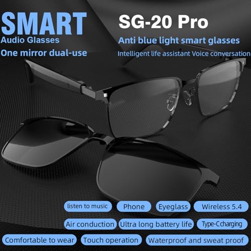 4.PC TCA Materialien: Die leichte Smart Brille besteht aus PC, TCA, ABS und einer Aluminiumlegierung und ist auf Mobilität ausgelegt, sodass sie sowohl robust als​ auch leicht zu tragen ist.